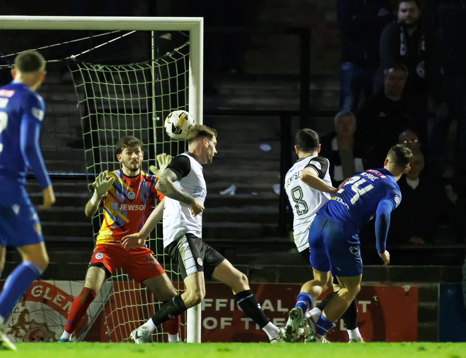 On 77 minutes Saints were deservedly back on level terms. Adam Forrester played a lovely weighted ball down the right to Sidibeh and the forward burst to the byeline before sending over a delightful cross which was fumbled by Russell and McPake reacted quickest to smash the ball high into the net.