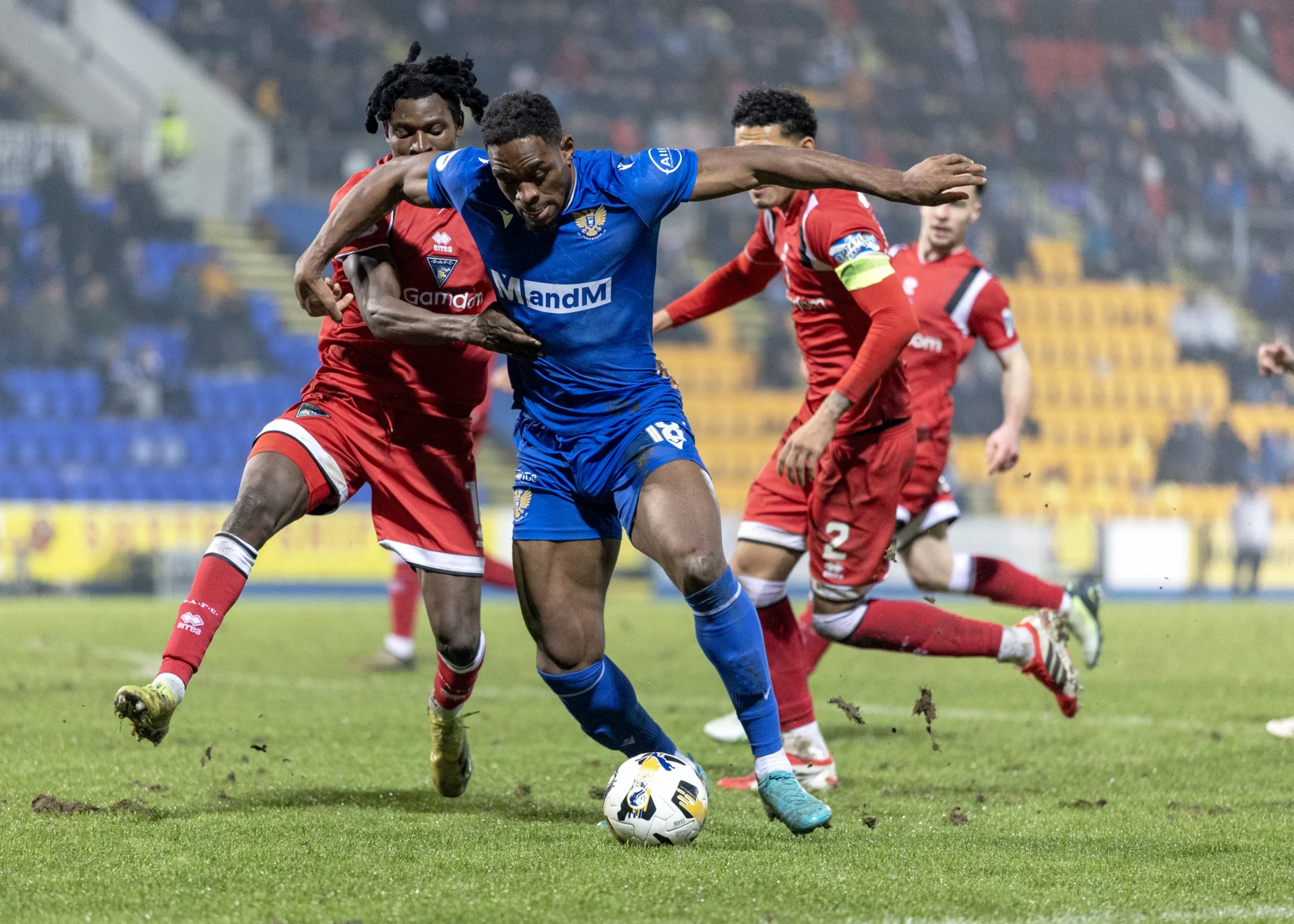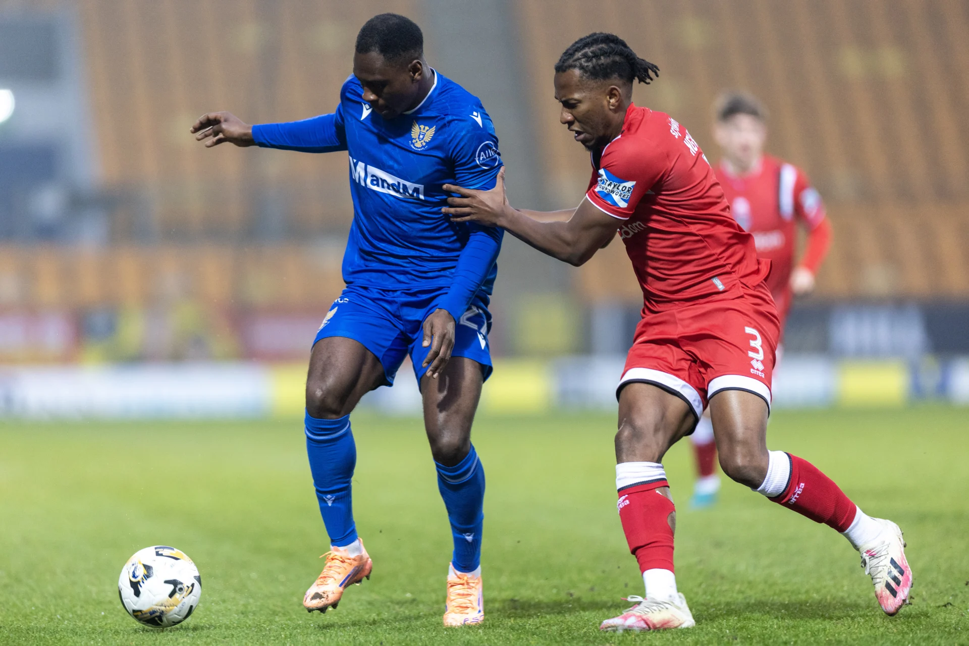 Cheick Diabate earned the game’s first caution on 21 minutes for pulling back Callum Morrison. The resultant free kick was taken by Morrison however, he couldn’t test Toby Steward as he curled his effort high into the Ormand Stand.